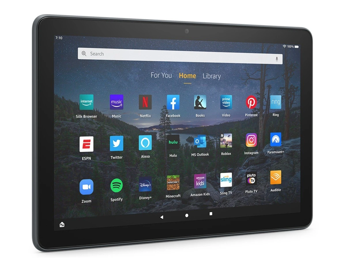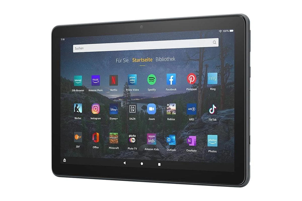Geniet van tot 12 uur lezen, surfen op internet via wifi, video’s bekijken en overal naar muziek luisteren. Power back-up via de USB-C (2.0) poort. Amazon-ingenieurs Fire-tablets om bestand te zijn tegen het dagelijks leven. Zoals gemeten in tuimeltests, is Fire HD 10 1,7× duurzamer dan de nieuwste iPad 10.2. Scherm gemaakt van versterkt aluminosilicaatglas. Breedbeeld-entertainment
