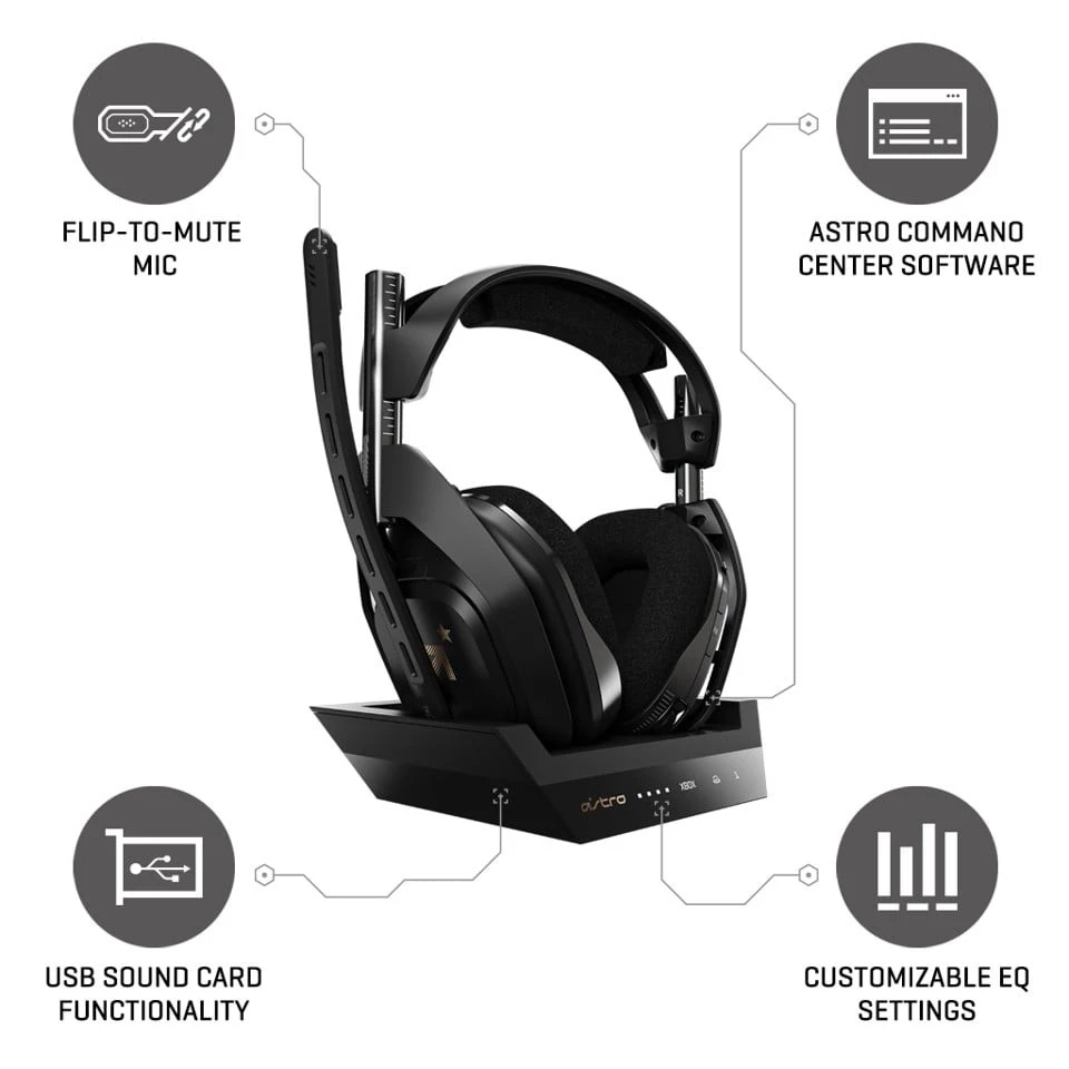 ● ASTRO Command Center-software – Pas Noise Gate, Side Tone en microfoonniveaus aan voor kristalheldere communicatie. Pas het gamevolume, chataudio, microfoon en AUX-kanalen afzonderlijk aan om aangepaste audiomixen te genereren voor streaming-uitvoer. Toekomstige firmware-updates voor de A50-headset en het basisstation zullen ook toegankelijk zijn via de ASTRO Command Center-software.