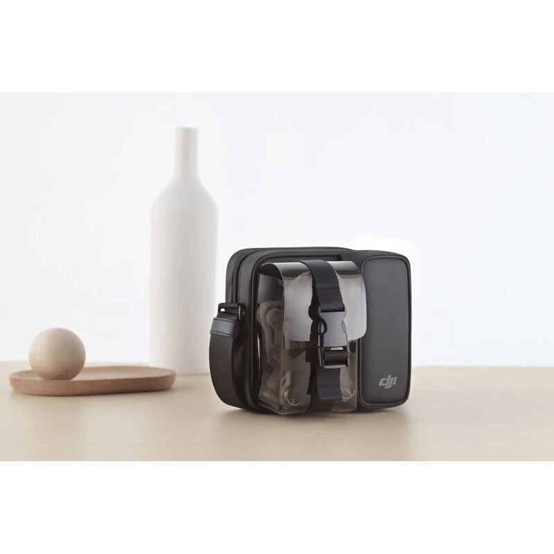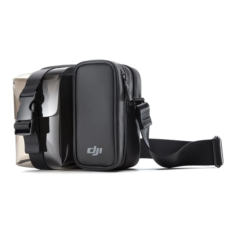 Een kenmerkende tas waar gemakkelijk een Mavic Mini, tweerichtings-oplaadhub, afstandsbediening en andere kleine dagelijkse voorwerpen of producten zoals Osmo Pocket en Osmo Action in passen.