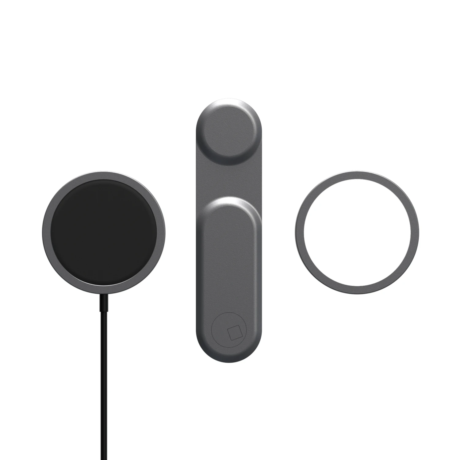 *Alleen verkrijgbaar in Basaltgrijs. **iPhone is door Apple beperkt tot opladen met 7,5 W op draadloze opladers van derden. Als je al een MagSafe-oplader hebt, kun je deze gebruiken met je EDGE Mount door een magnetische schijf aan de achterkant te bevestigen.