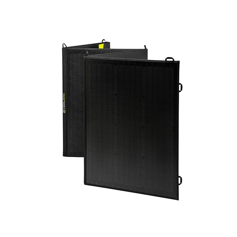 Vier monokristallijne panelen ingekapseld in een beschermende hoes kunnen worden neergeklapt tot een compact profiel voor eenvoudige opslag. Met ophanglussen kunt u het paneel aan voertuigen, tenten en meer bevestigen.