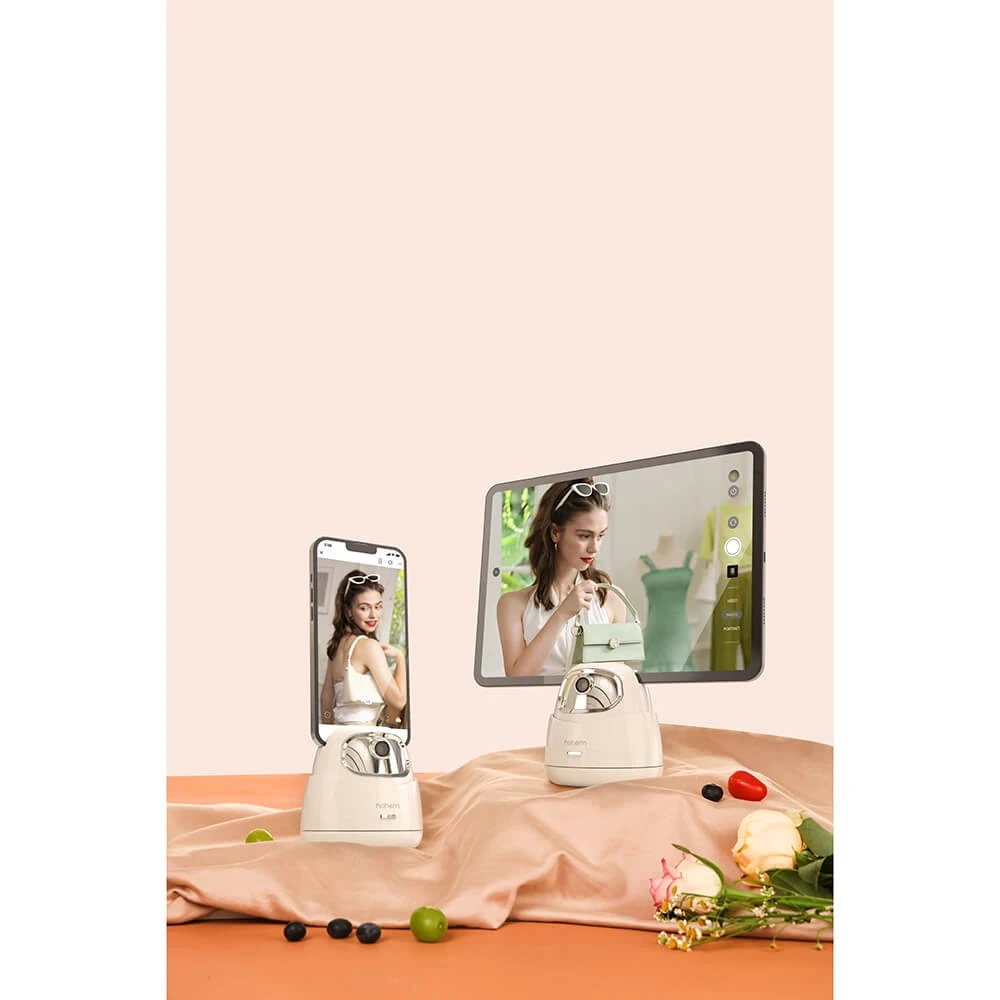 Hohem GO is een houder voor telefoon en tablet met 2-assige, 360 graden automatische tracking. Hiermee kun je videovergaderingen, dans, fitness en vlogs live streamen. Deze slimme houder is je assistent en gaat binnen enkele seconden aan de slag. Het werkt zonder APP of bluetooth en heeft AI Face Tracking. Geef het een OK-gebaar om te starten en een handpalmgebaar om te stoppen.