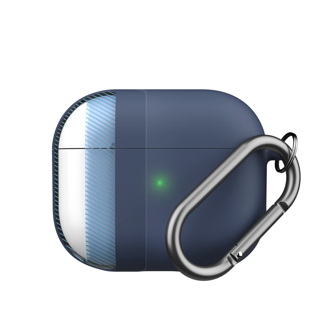 De Stealth-knop aan de achterkant van de HybridShell Series-hoes zorgt voor intuïtieve toegang tot de instelknop aan de achterkant van de AirPods-oplaadhoes. De HybridShell Series Keychain-hoes biedt een handige manier om uw AirPods onderweg vast te klemmen en mee te nemen.