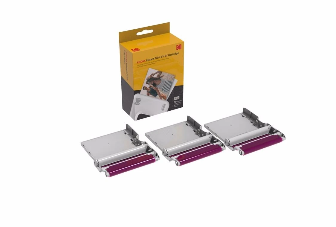 Papiercassette voor alle Kodak 4-pass-producten met een formaat van 3×3 inch. Bevat 30 fotopapier en inkt voor duurzame prints.