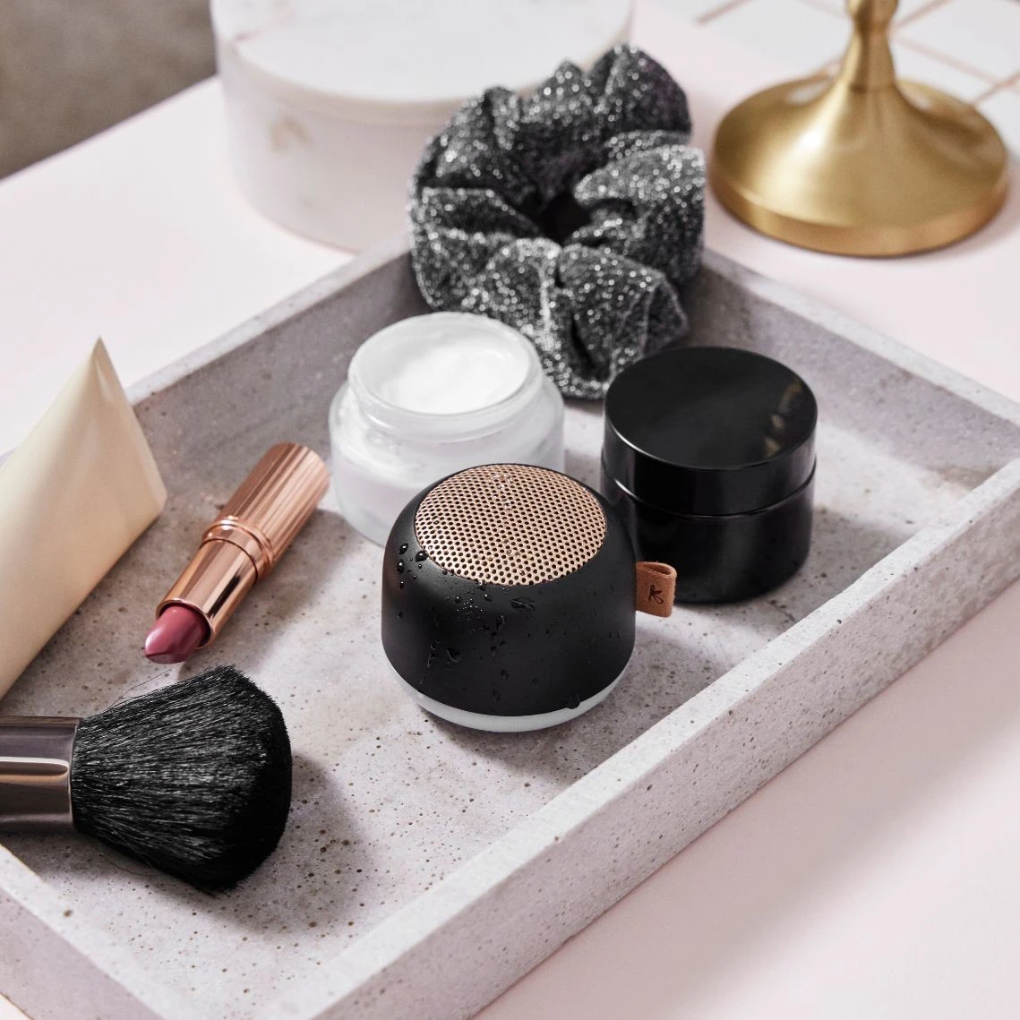 De aLIGHT is een verleidelijke combinatie van een lamp en een luidspreker en verlicht je dagelijkse routines. Gebruik hem in de badkamer om jezelf te kalmeren in een bad met chille deuntjes en kalmerend licht, of hang hem aan de muur voor meezing-douchesessies.