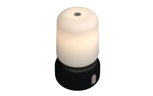 Een moderne en mooie speaker met bijbehorende lamp die je huis kan decoreren of mee naar buiten kan nemen in weer en wind