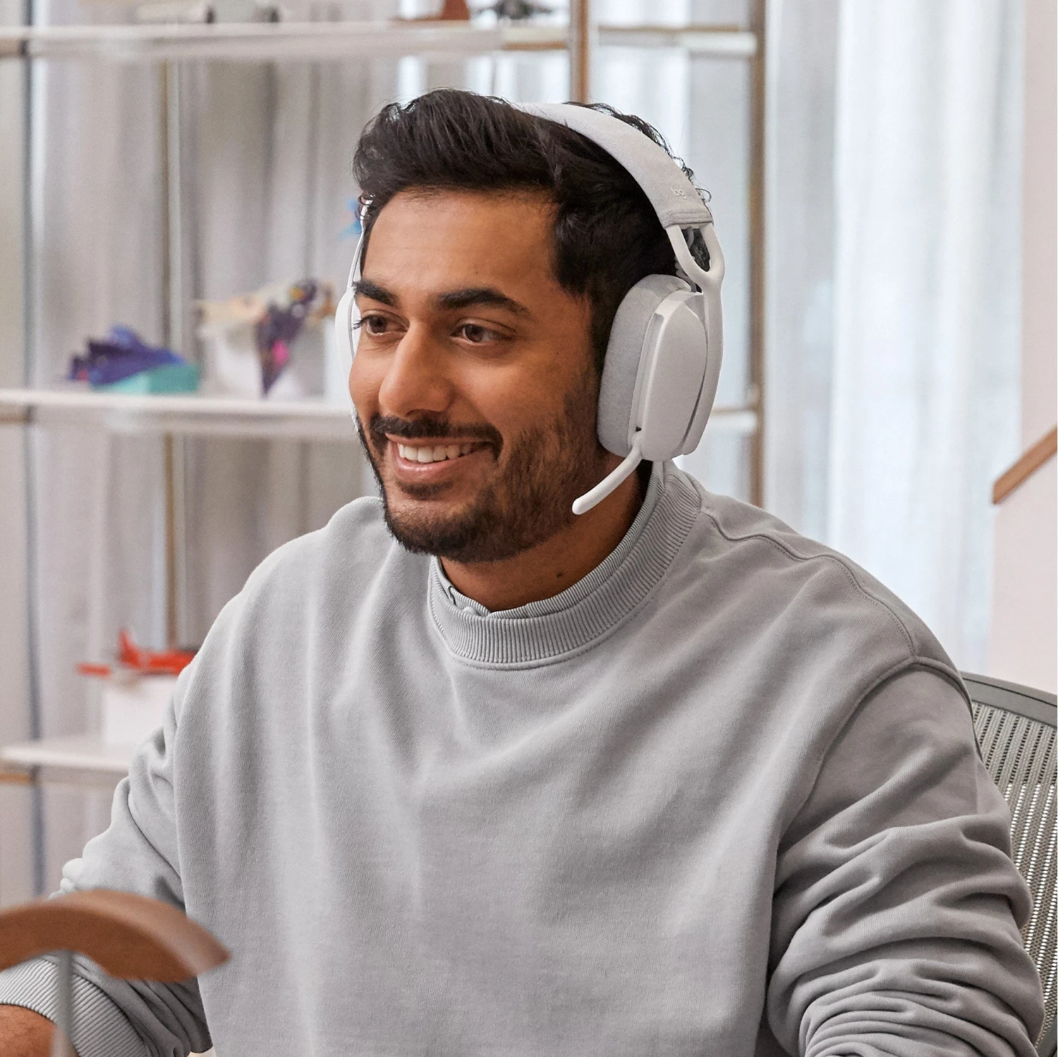 Werk. Toneelstuk. Sfeer: de Zone Vibe 100 draadloze over-ear hoofdtelefoon is gemaakt voor de manier waarop u werkt en speelt en is professioneel genoeg voor op kantoor, casual genoeg voor thuis en verkrijgbaar in drie moderne kleuren