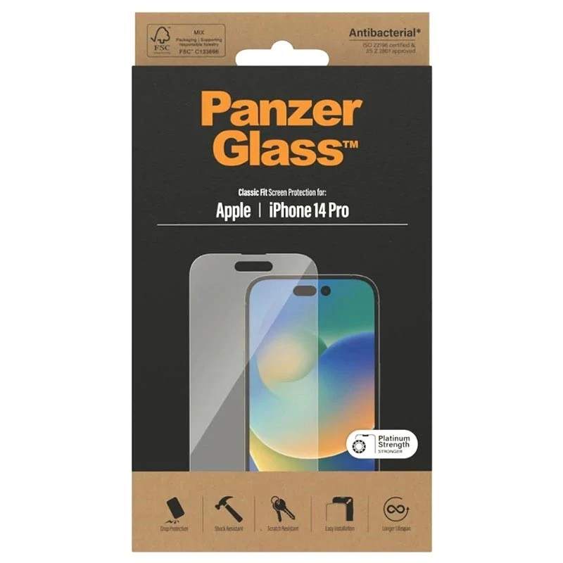 Bescherm uw telefoon tegen de gevaren van het dagelijks leven met een PanzerGlassâ„¢-schermbeschermer. Onopzettelijke stoten tegen scherpe gevaren in uw zak of verpletterende vallen op steenharde trottoirs zijn geen partij voor deze kras- en schokbestendige schermbeschermer, die een hoogwaardige valbescherming biedt. Het heeft zelfs een veegvrije coating met antibacteriële werking die sporen van vingerafdrukken vermindert en tot 99,99% van alle voorkomende oppervlaktebacteriën doodt. Installatie is easy peasy. Meestal is één poging voldoende, en als je meer nodig hebt, maak je geen zorgen: de screenprotector kan tot 200 keer opnieuw worden geïnstalleerd. En als het eenmaal is aangebracht, hoef je nooit meer bang te zijn dat je telefoon op de grond valt. Dit gebeurt misschien niet, maar als dat wel het geval is, zult u er spijt van krijgen dat u niet op “toevoegen aan winkelwagen” heeft geklikt. De Classic Fit screenprotector bedekt het actieve deel van je scherm en wordt geleverd in een FSC-gecertificeerde verpakking die gerecycled kan worden.