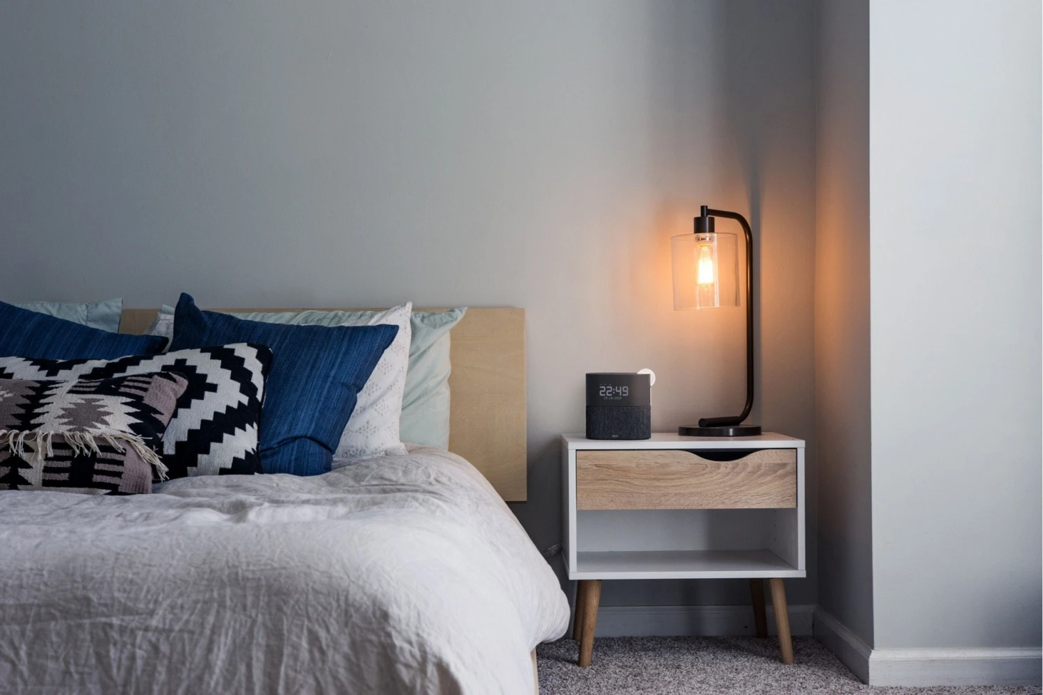 De perfecte radio voor je slaapkamer combineert stijlvol Deens design en hoogwaardige materialen in een aangename mix van eenvoud en hightech features. WAKEit is bekleed met Fiord-stof van de Deense fabrikant KVADRAT. De constructie van de stof combineert gemêleerde garens met effen gekleurd garen waardoor een unieke stof- en kleurencombinatie op het oppervlak van de stof ontstaat.