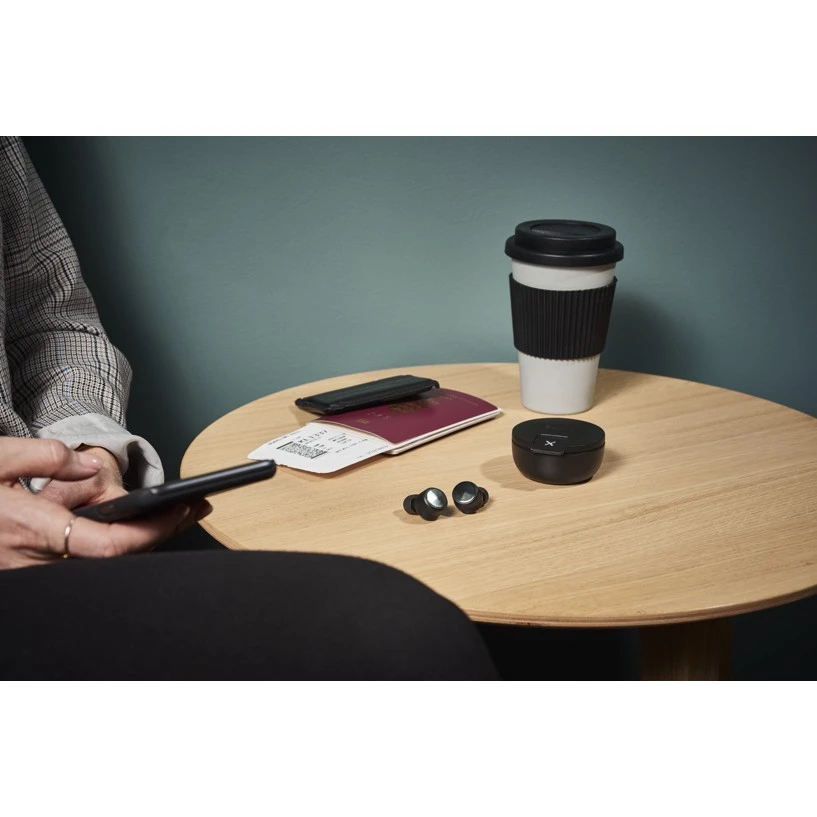 True Wireless oordopjes Geweldig geluid Deens design Bluetooth 5.0 Draadloze audio tot 28 uur Draadloos oplaadetui Aanraakbediening Handsfree telefonie IPX5 waterdicht Comfortabele en veilige pasvorm Passieve ruisonderdrukking