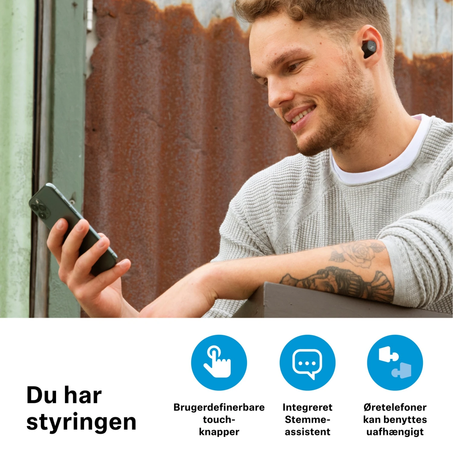 - Altijd muziek : Wil je de hele dag luisteren? Met een batterijduur van 8 uur en nog eens 16 uur met de oplaaddoos, krijg je tot 24 uur speeltijd.