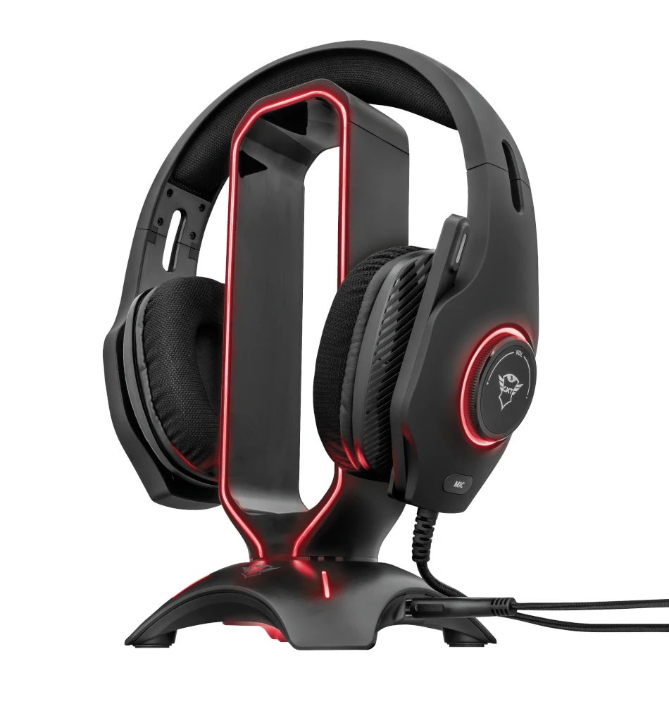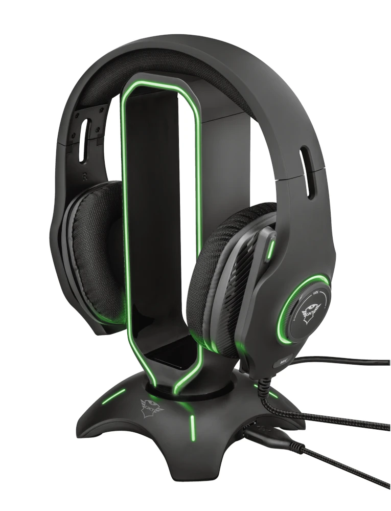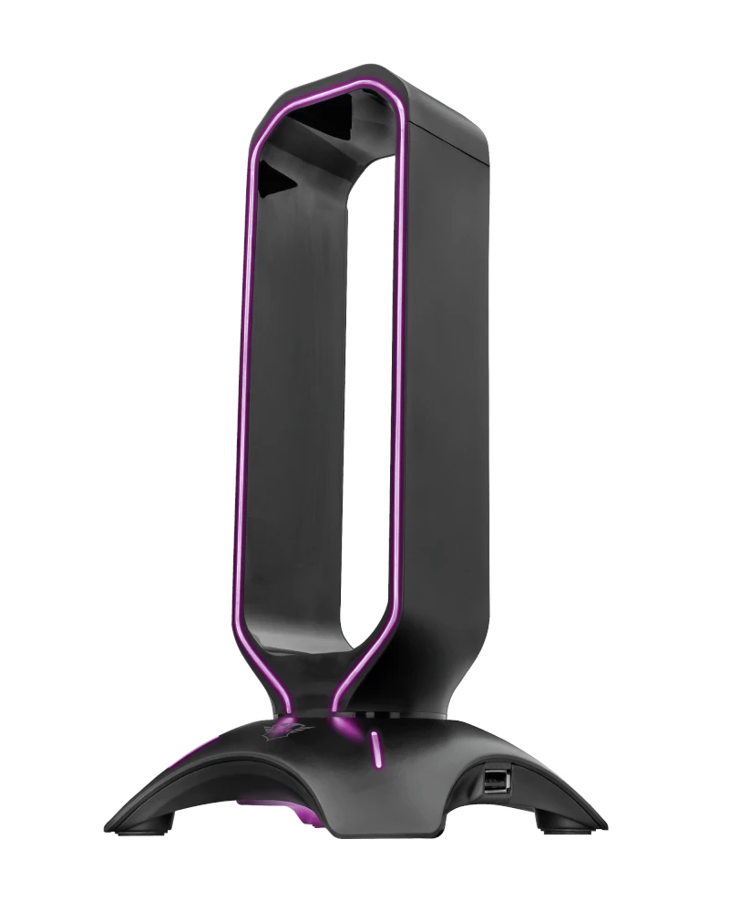 Houd je bureau georganiseerd met de Trust GXT 265 Cintar RGB Headset Stand. En het stijlvolle accessoire doet meer dan alleen je headset ondersteunen: het heeft ook twee gemakkelijk bereikbare USB-poorten en voegt indrukwekkende RGB-verlichting toe aan je gaming-setup.